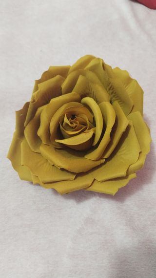 Preciosa flor de estilo flamenco. - Diseño con pétalos de tela y encaje. - Color rosa vibrante.