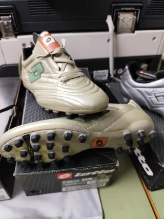 Botas de fútbol Lotto en color dorado con detalles en verde. - Diseño deportivo. - Cierre con cordones. - Suela con tacos para césped.