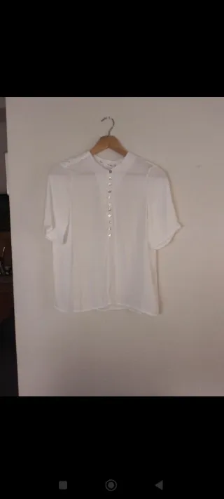 Elegante camisa blanca de Sfera, perfecta para cualquier ocasión. - Diseño de manga corta. - Cierre de botones al frente. - Tejido ligero y fluido.