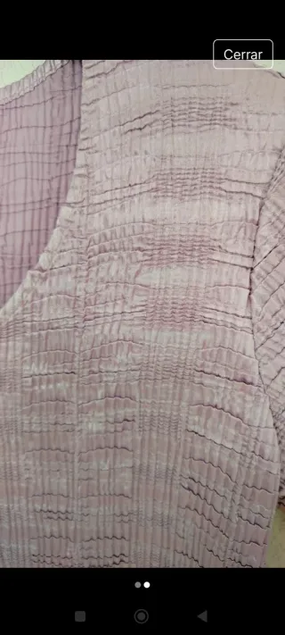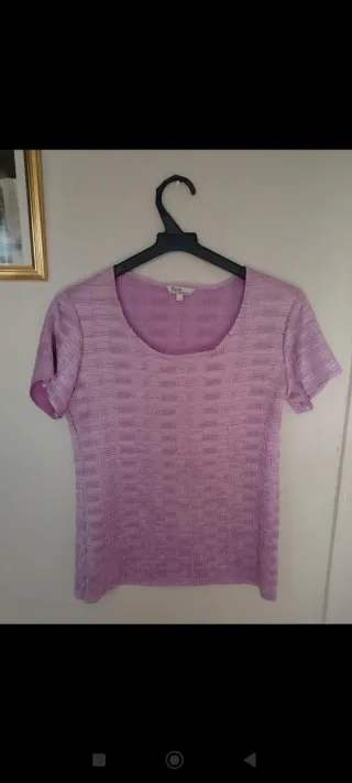 Blusa con un diseño plisado en color malva - Manga corta. - Cuello redondo.