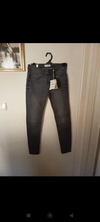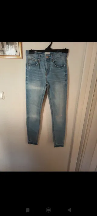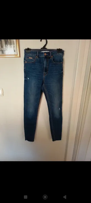 Vaqueros de corte ajustado de Zara Woman. - Diseño de cinco bolsillos. - Cierre de cremallera y botón. - Tiro alto.