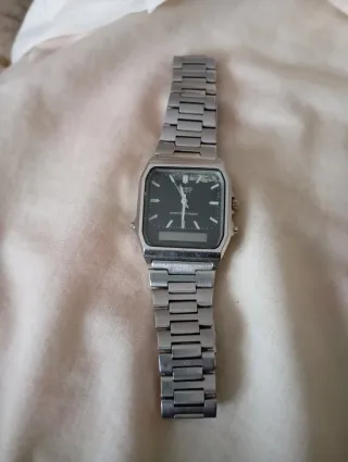 Reloj Casio con diseño clásico y moderno. - Esfera negra, con defecto - Correa de metal plateada. - Resistente al agua 50 metros.