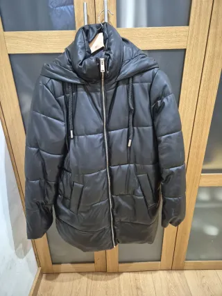 Cazadora de polipiel con capucha y cremallera. - Diseño acolchado. - Cordones ajustables en la capucha. - Bolsillos frontales.