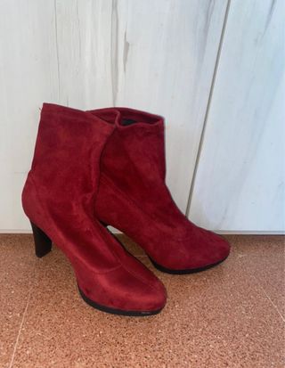 Botines de terciopelo en muy buen estado. - Material: Terciopelo - Color: Rojo - Tipo de tacón: Bloque