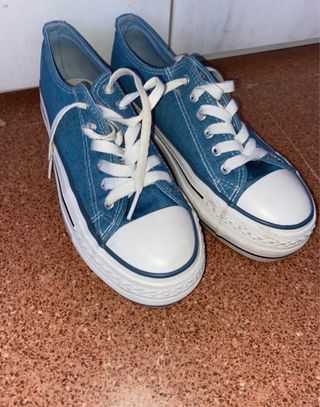 Zapatillas estilo Converse en buen estado. - Color azul denim. - Cordones blancos. - Suela blanca con detalles en azul.