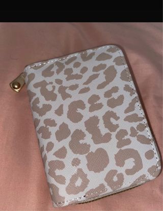 Cartera compacta con un llamativo estampado de leopardo. - Diseño moderno y elegante. - Cierre de cremallera para mayor seguridad.