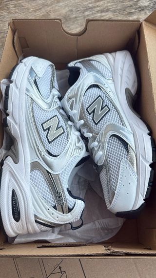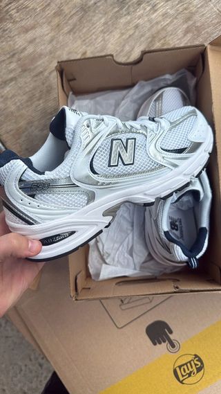Zapatillas deportivas New Bálance 530 talla 37 - Diseño deportivo en color plata y blanco. - Cierre con cordones.
