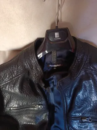 Cazadora de piel de la marca Hervás. - Talla 56. - Color negro.