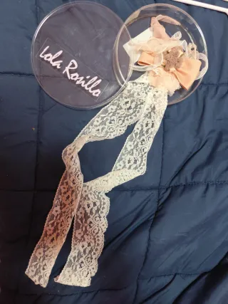 Precioso tocado adornado con encaje y lazo, ideal para eventos especiales. - Diseño delicado con detalles de encaje. - Adornado con un lazo de color rosa pálido. - Incluye una cinta de encaje blanco para sujetar.