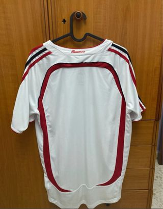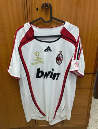 Camiseta del AC Milán de la temporada 2007, conmemorativa de la final de la Champions League. - Diseño oficial Adidas. - Detalles en rojo y blanco. - Logo de la Champions League y patrocinador Bwin.