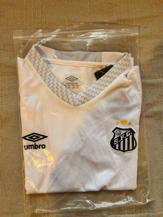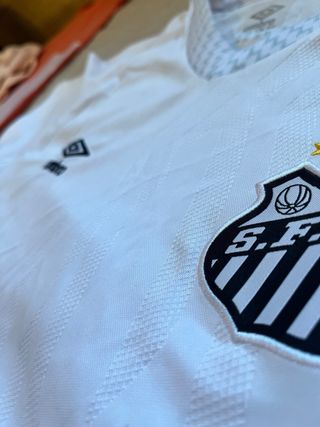 Camiseta y calzonas del Santos FC, temporada 2025/2026. Precio negociable Sin usar, con etiquetas - Diseño clásico en blanco y negro. - Escudo del club bordado. - Logo de Umbro. - Cuello con detalle geométrico.