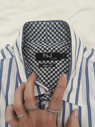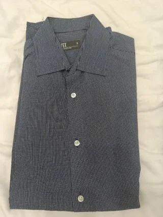 Camisa de vestir de la marca Celopman con un diseño sutil y elegante. - Color: azul y blanco. - Talla: M / 38 / 10. - Cuello con botones. - Puños abotonados.