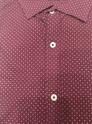 Camisa de manga larga con un estampado discreto en color burdeos. - Cuello camisero. - Cierre de botones. - Corte slim.