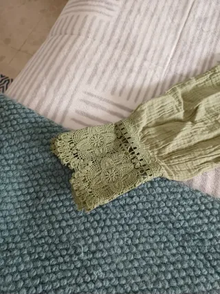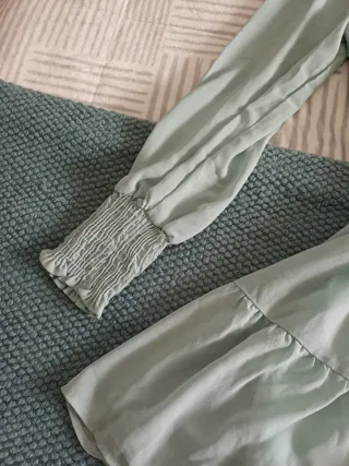Vestido de manga larga con detalles fruncidos y falda escalonada. - Cuello alto con volante. - Cintura elástica fruncida. - Mangas abullonadas con puños elásticos. - Falda con dos volantes. -También quedría bien a quien use lla talla S #vestido #verano #azul #nuevoconetiqueta