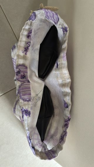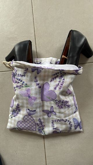 Funda decorada con un estampado de lavanda, corazones y mariposas. (Pregunta sin compromiso modelos disponibles) 💚Solidaridad hecha a mano Guarda tacones de flamenca, con costura para que las puntillas no arañen los zapatos y cierre de cordón. Hecho a mano con cariño. Cada pieza es única y el 100% de la recaudación será donado íntegramente a la lucha contra el cáncer. 🎗️ ✨ Pequeños gestos que sostienen grandes causas.