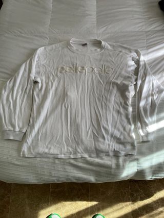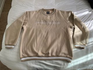 Sudadera de la marca Pelle Pelle en color beige. Presenta un diseño con el logo de la marca bordado en la parte frontal. - Cuello redondo. - Puños y bajo elásticos con detalles de rayas. - Manga larga.