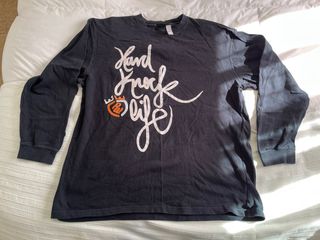 Camiseta negra de manga larga con el diseño Hard Knock Life en blanco y un detalle naranja. - Diseño gráfico llamativo. - Manga larga.