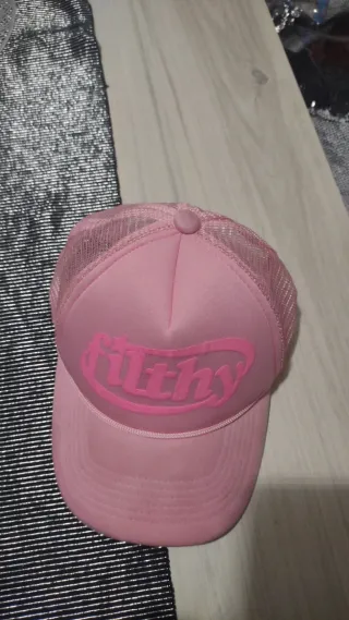 Gorra de estilo trucker con un diseño moderno. - Parte frontal de polipiel rosa. - Malla en la parte trasera. - Detalle de cordón en la visera. - Logo filthy en relieve en la parte frontal.