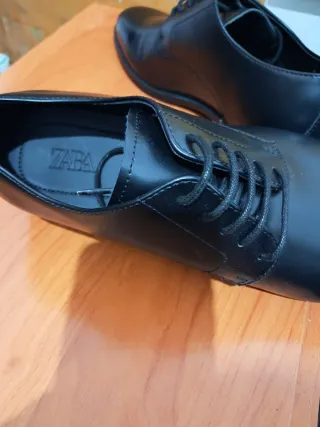 Elegantes zapatos de vestir de la marca Zara. - Diseño clásico con cordones. - Acabado brillante. - Logo de la marca en la plantilla.
