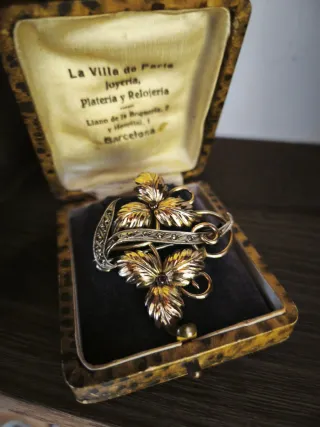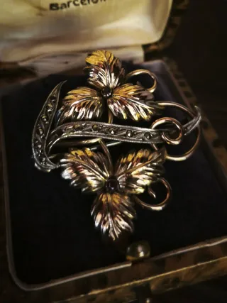 Broche antiguo plata y oro floral