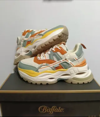 Zapatillas Buffalo Mujer Beige y Naranja Nuevas