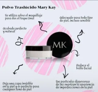 Polvo translúcido Mary Kay. - Controla la oleosidad y el brillo. - No obstruye los poros. - Acabado perfecto para tu maquillaje. - Incoloro, ideal para todos los tonos de piel.