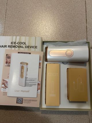 Depiladora láser Ice-Cool. - Usada una sola vez - Incluye manual de usuario y guía rápida. - Contiene accesorios adicionales en sus cajas.