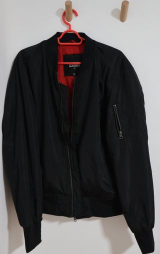 Chaqueta estilo bomber de la marca Urban Classics. Como Nueva - Diseño moderno y versátil. - Forro interior de color rojo. - Cremallera frontal. - Bolsillo con cremallera en la manga.