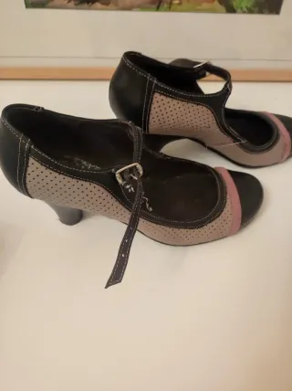 Zapatos de tacón fiesta negros y rosas