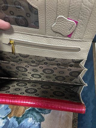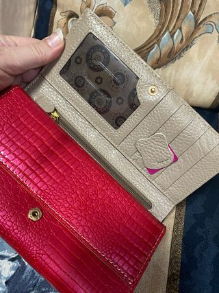 Cartera de piel beige y roja