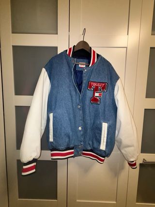 Chaqueta bomber estilo universitario de Tommy Hilfiger. Como nueva. Corte oversized. Es una talla S pero talla como una L ancha (no me digas por qué), yo mido 1,80 (ultima foto de modelo). Costó 230-240€ aprox.