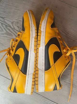 Zapatillas deportivas Nike Dunk Low con un diseño llamativo. Son 42 pero tallan mas como 42,5 - Combinación de colores amarillo y negro. - Cierre con cordones. - Suela blanca y amarilla