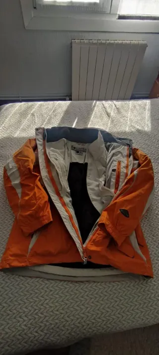 Chaqueta de la marca Columbia, ideal para actividades al aire libre. Combina tonos grises y naranjas para un estilo deportivo. - Diseño moderno y funcional. - Cierre frontal con cremallera. - Bolsillos prácticos.