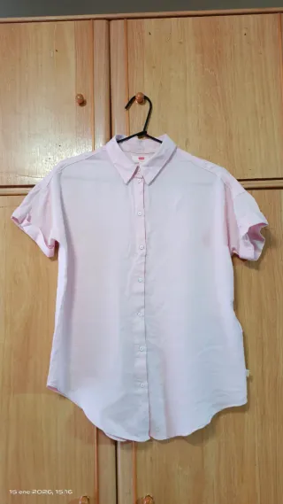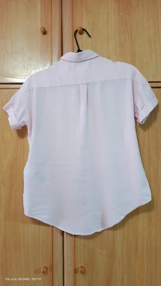 Camisa de manga corta en color rosa. - Cuello camisero. - Cierre de botones. - Corte recto.
