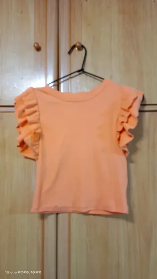 Conjunto de 5 preciosos tops de manga corta con un diseño de volantes. - Manga corta con volantes. - Color naranja/amarillo/negro/rosa/blanco