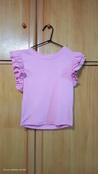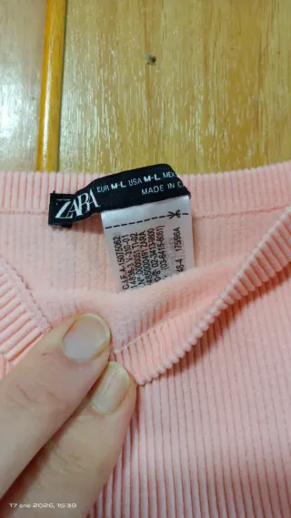 Top corto de manga corta en color rosa de la marca Zara. Diseño moderno y cómodo. - Corte crop. - Cuello redondo.
