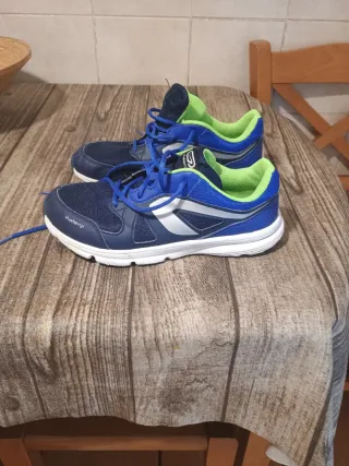 Zapatillas deportivas de la marca Kalenji. - Diseño deportivo. - Cierre con cordones. - Combinación de colores azul y verde.