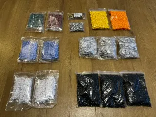 Lote de cuentas y cubos de plástico para la creación de pulseras y bisutería. - Variedad de colores disponibles. - Material plástico resistente. - Tamaño cuentas 6x9 mm, colores sólidos: plateado (100u), dorado (100u), granate (200u), verde (200u), azul (2x 200u), blanco (2x200u), naranja (400u), amarillo (400u), negro (3x 400u). - Cubos 6mm, letras D, B, S (500u cada letra). - Precio para todo el lote, consultar precio por separado.