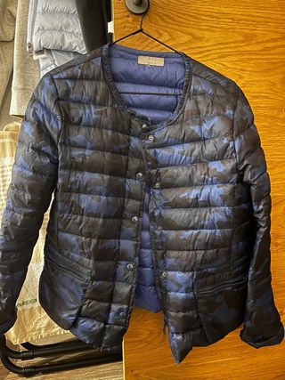 Chaqueta acolchada con estampado de camuflaje, de plumas finito para primavera con bolsa para meterlo. - Diseño con cuello redondo. - Cierre de botones. - Bolsillos con cremallera en los laterales.