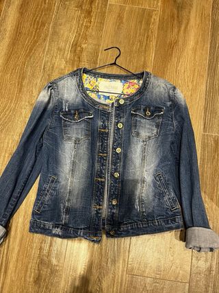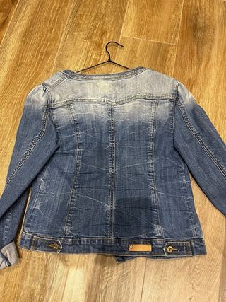 Chaqueta vaquera de la marca Fracomina. - Diseño moderno con efecto desgastado. - Cuello redondo. - Cierre de botones. - Puños enrollados.