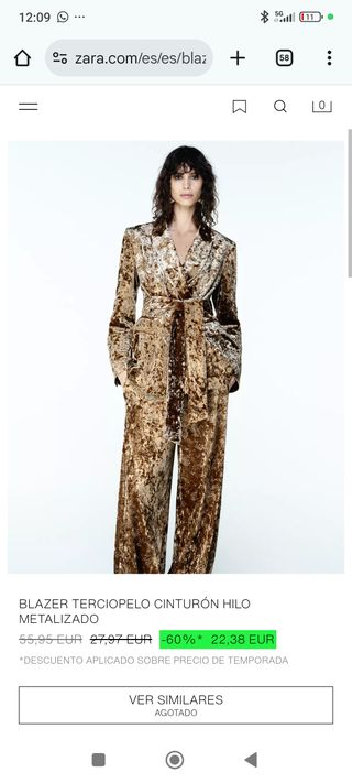 Blazer Zara Terciopelo Cinturón Hilo Metalizado