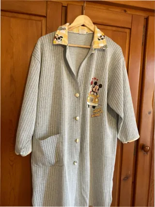 Bata con estampado divertido de Mickey y Minnie. - Cuello con estampado de cuadros y Mickey. - Cierre de botones. - Bolsillos delanteros.
