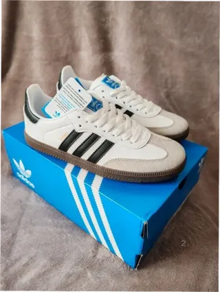 Zapatillas Adidas Samba OG en color Cloud White y negro. Un clásico atemporal. - Diseño icónico de las Samba OG. - Combinación de materiales de alta calidad. - Suela de goma para mayor durabilidad.
