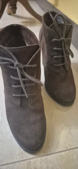 Botines de ante con cordones y tacón grueso. - Material: Ante - Color: Marrón - Cierre: Cordones - Tacón: Grueso