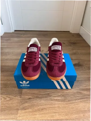 Zapatillas Adidas Handball Spezial en color Shadow Red. Un clásico con un diseño retro. - Parte superior de ante y malla. - Suela de goma. - Detalle de las tres rayas blancas.