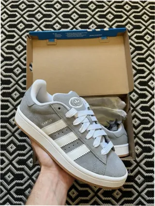 Zapatillas Adidas Campus 00s en color gris y blanco. Modelo de ante con detalles icónicos. - Cierre con cordones. - Suela de goma. - Detalle de las tres rayas.