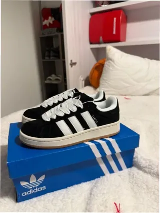 Zapatillas Adidas Campus 00s en color negro y blanco. Un clásico renovado. - Diseño de ante. - Tres rayas blancas características de la marca. - Suela de goma. - Cierre con cordones.