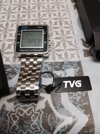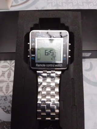 Reloj con función de mando a distancia. - Diseño moderno y funcional. - Correa metálica plateada. - Pantalla digital.