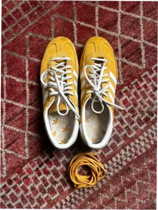 Zapatillas Adidas Handball Spezial en color amarillo. - Exterior de ante. - Detalle de las tres rayas blancas. - Suela de goma. - Cierre con cordones.