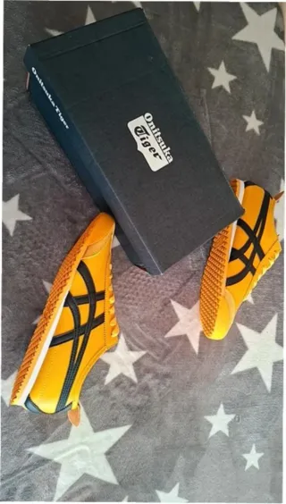 Zapatillas Onitsuka Tiger modelo Mexico 66, inspiradas en Kill Bill. - Diseño icónico en amarillo y negro. - Talla 42.